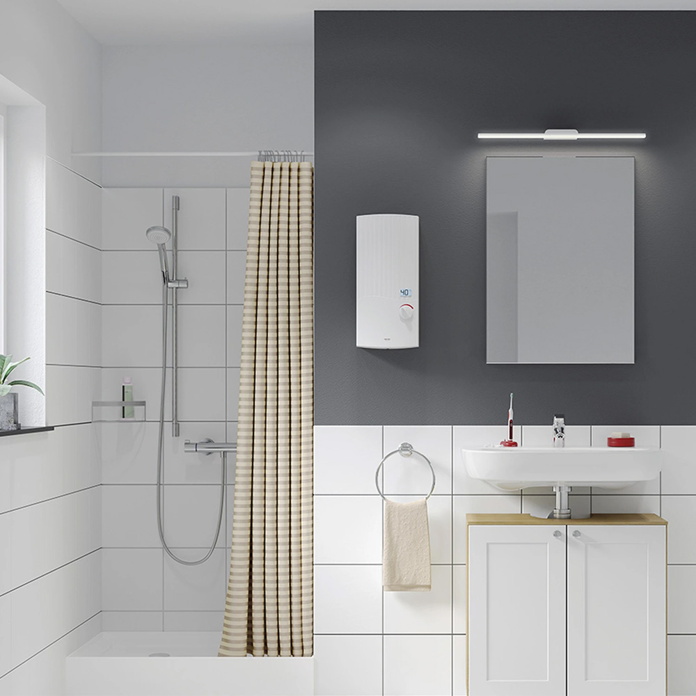 Električni protočni bojler pogodan za instalaciju u kupatilu i kuhinji. Potpuna elektronska kontrola temperature